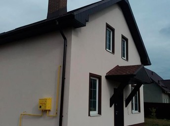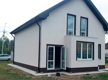 Описание: Дом из газобетона, утеплялся по системе Ceresit, каменной ватой Технониколь Технофас. При утеплентии использовались следующие материалы: цокольный профиль, фасадный дюбель Termoclip, сетка Баутекс Крепикс, фасадные уголки, примыкания к окнам Bella Plast. Финишная отделка декоративная штукатурка Ceresit CT 174 1.5мм, цвет Columbia 1. Цоколь и углы дома цвет Ral 8017.